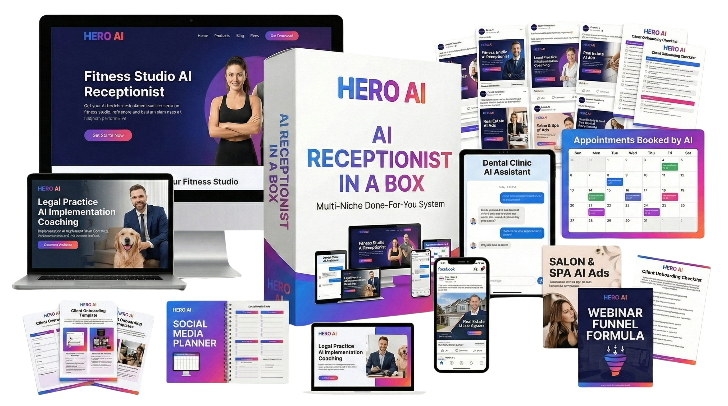 Launch in 7 days with 10+ assets including landing pages, website, funnel, AI voice demo, ads, 45 min presentation, onboarding, implementation and more!